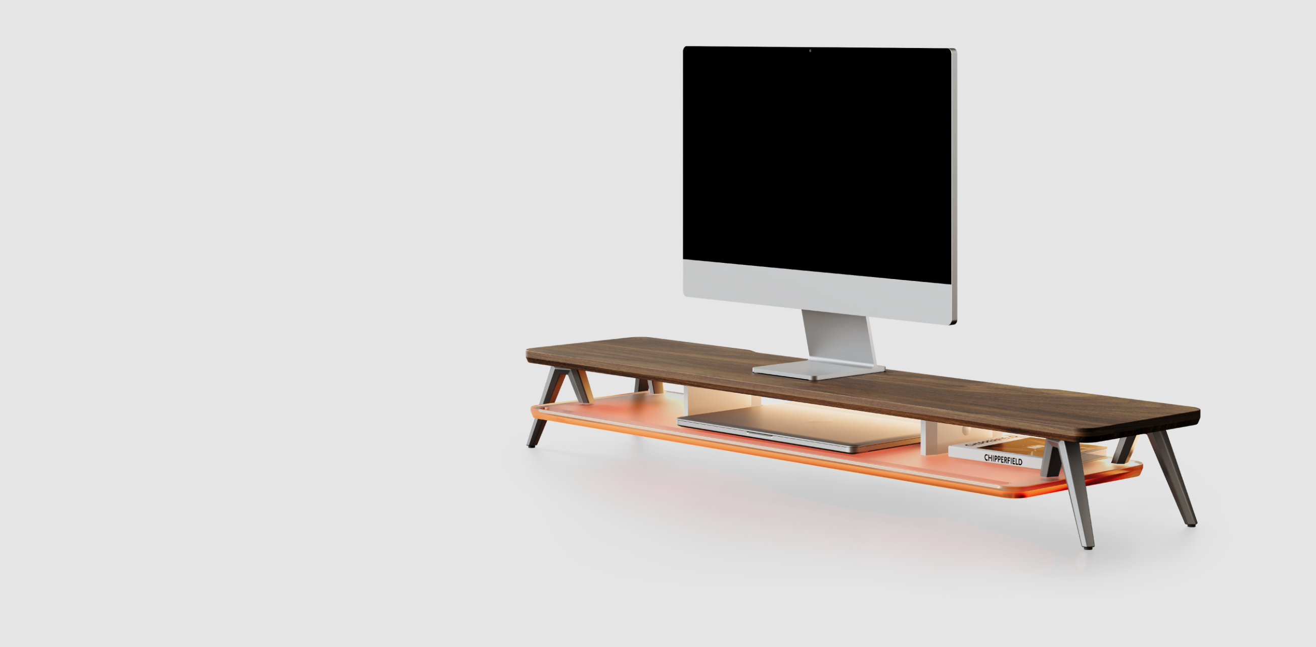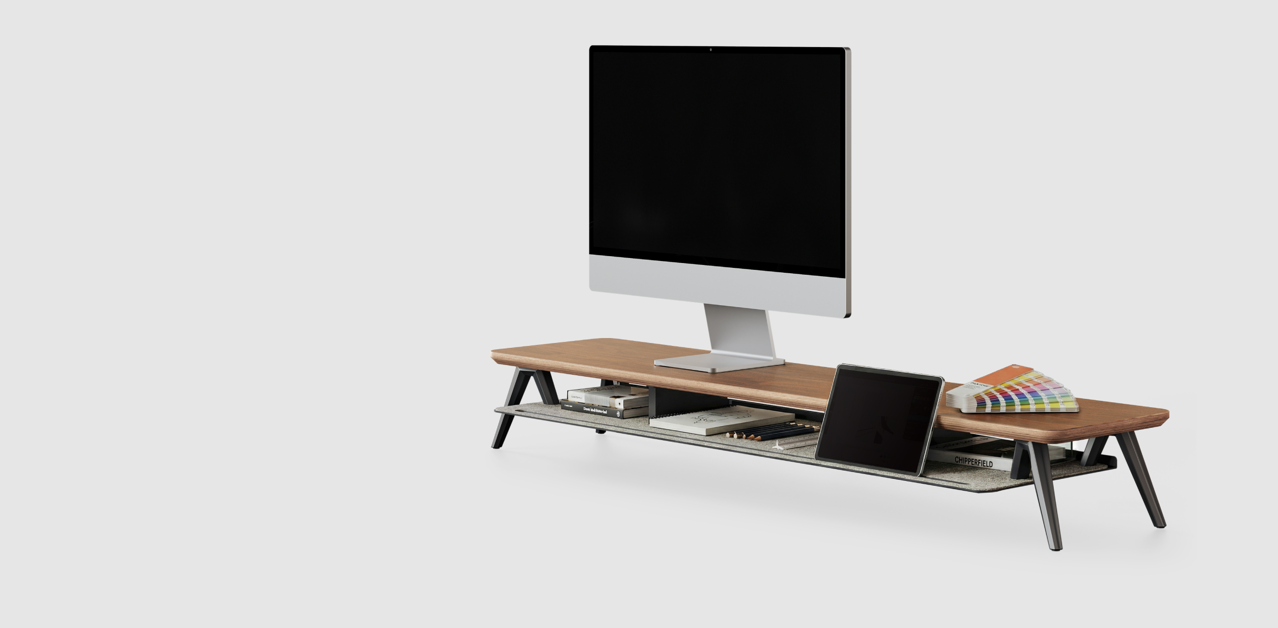 Indem es deine Bildschirme anhebt, schafft das Desk Shelf eine zusätzliche Ebene und maximiert so die nutzbare Fläche auf deinem Schreibtisch.
