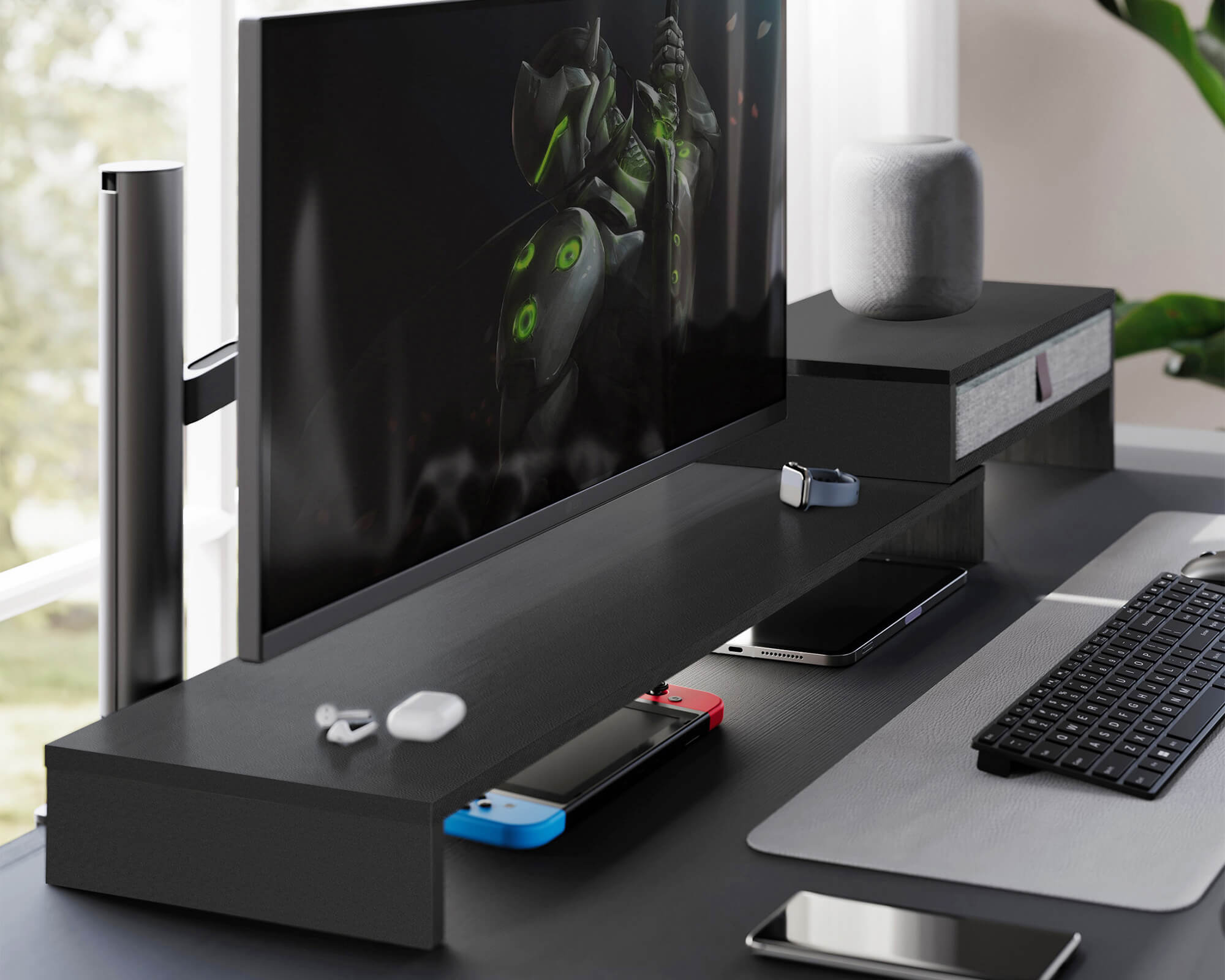 Ja! Viele FENGE Ständer verfügen über smarte Designs wie offene Fächer oder Kabelöffnungen, um Ihren Arbeitsplatz ordentlich zu halten.