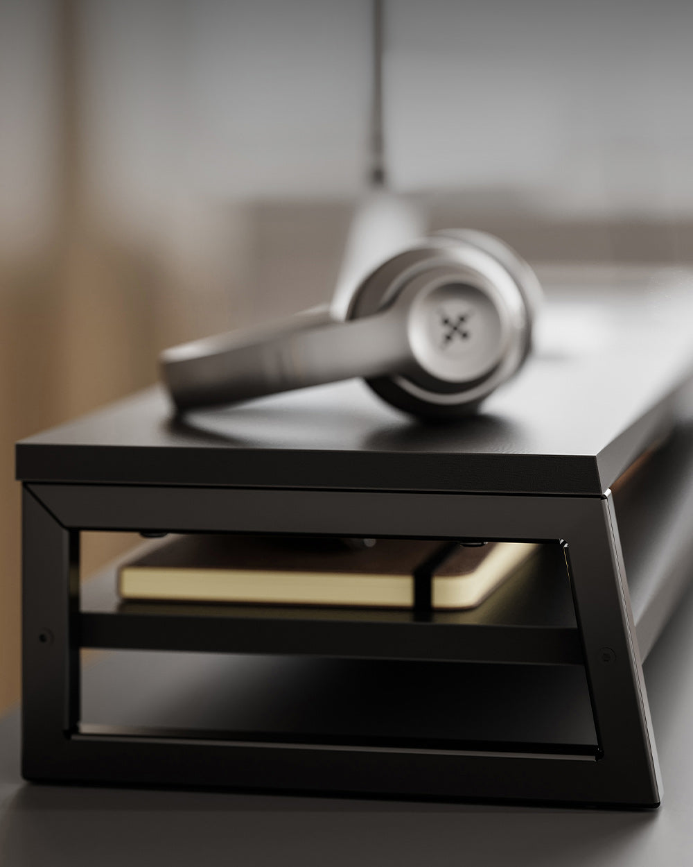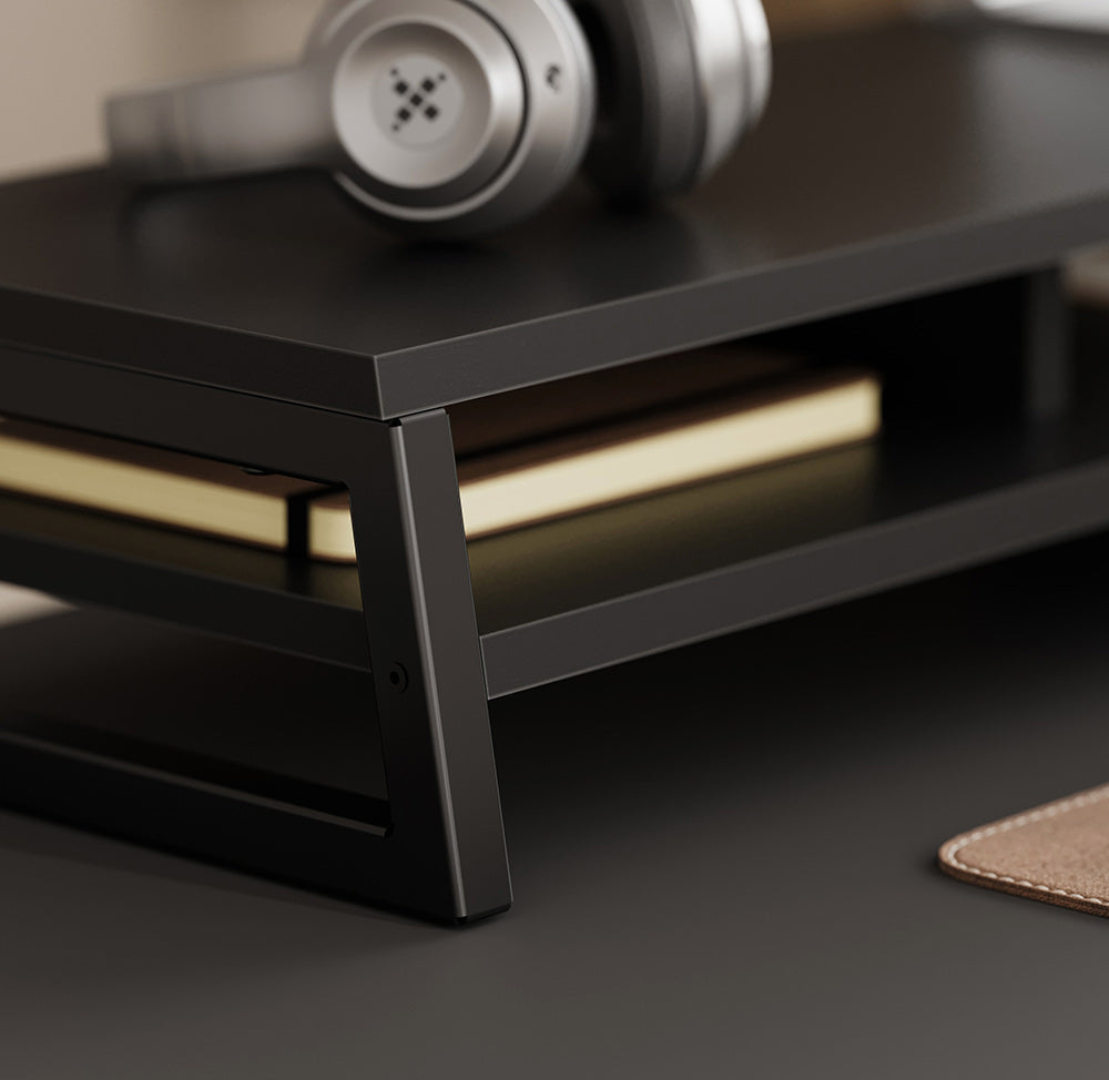 Die sanft geneigten 10°-Beine bieten eine makellose Balance aus Standfestigkeit und markantem Design. Dank des innovativen Zwei-Ebenen-Designs mit drei separaten Zonen gestalten Sie Ihr Schreibtisch-Layout ganz nach Ihren Bedürfnissen. Verabschieden Sie sich vom Chaos und übernehmen Sie die Kontrolle über Ihren Arbeitsbereich.